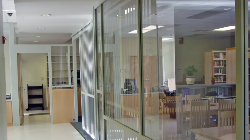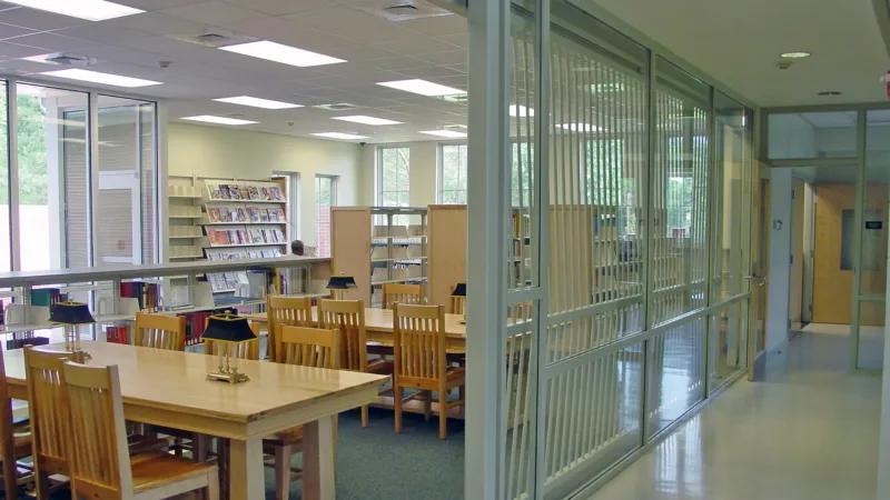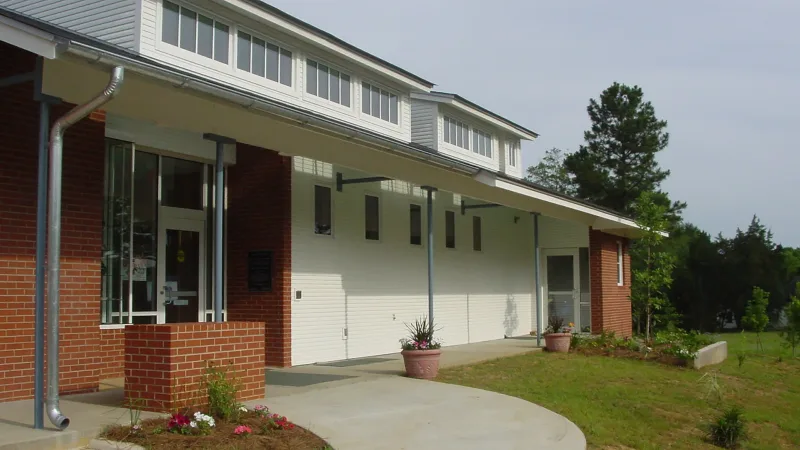 A long-deserved branch library, the Camden Library reflects the local vernacular architecture in this rural Madison County hamlet. It respects the historic buildings of Camden while carrying a strong sense of public identity. In addition to normal library functions, the library includes a community meeting room and a reading garden.