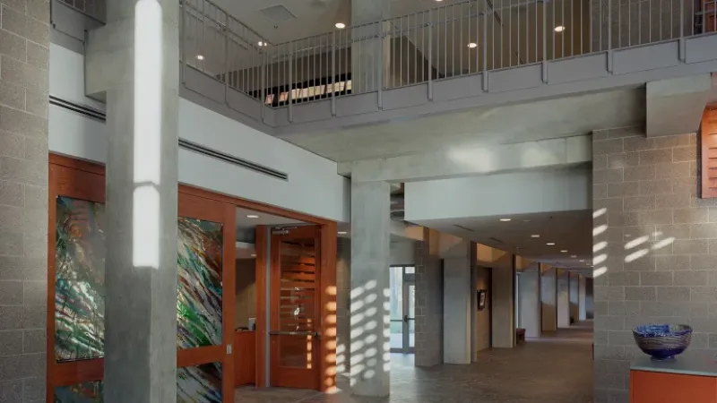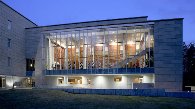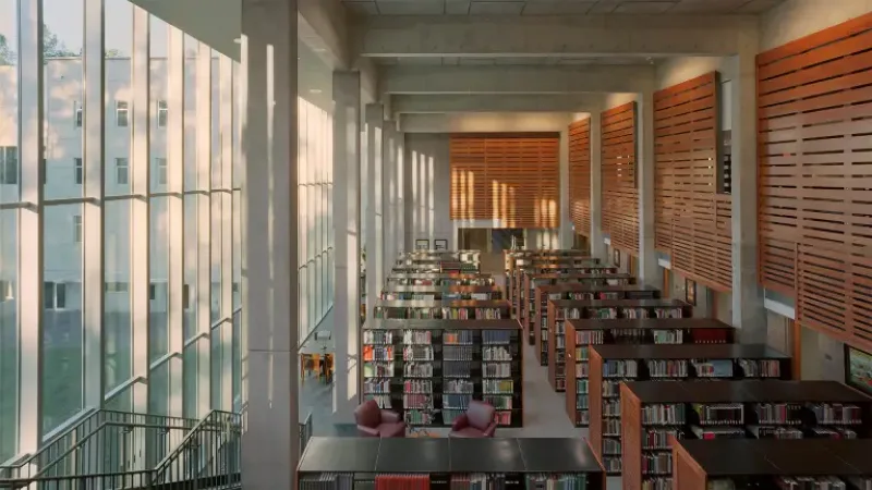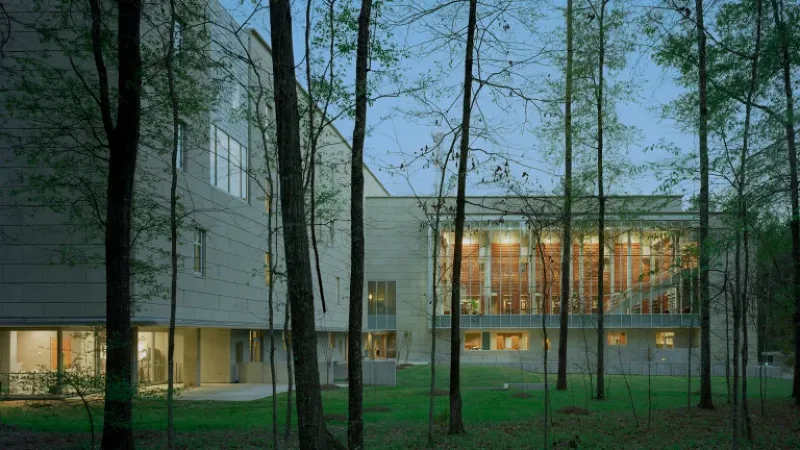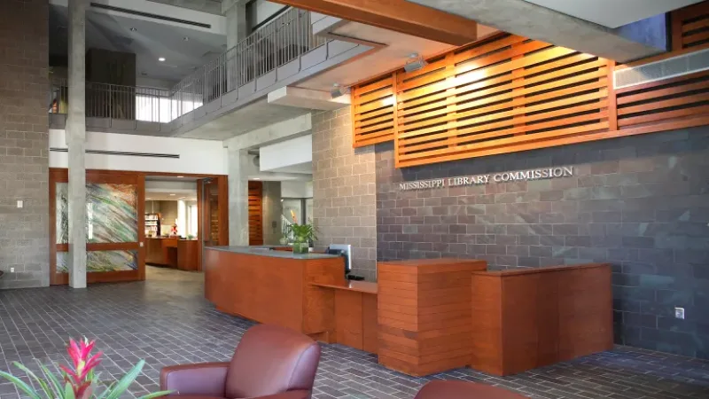 The Mississippi Library Commission serves a vital purpose in providing leadership, service, resources and education to 47 library systdivs and 2 independent libraries around the state. The Library Commission Building replaces an existing facility in Jackson’s inner city. The building is situated on a gently sloping, heavily-wooded lot on the Research and Development Park campus in Jackson. The campus is comprised of two major eldivents, including an office tower for 60 divployees and a large library wing to house the State Library’s inter-library loan collection. Additionally, the facility houses the Mississippi Library for the Blind and Physically Handicapped, the Mississippi Center for the Book, a large multi-purpose/meeting room, distance learning facilities, and computer lab/classrooms. The new building design incorporates a technological infrastructure plan that accommodates today’s state-of-the-art data/telecommunications/audiovisual systdivs, while simultaneously providing “open infrastructure” for the evolution of tomorrow’s virtual library. Other high priorities include the design of a facility that may be characterized as timeless and inviting, distinctive and in harmony with its surroundings. It is constructed of durable materials for a long-term, low-maintenance life.