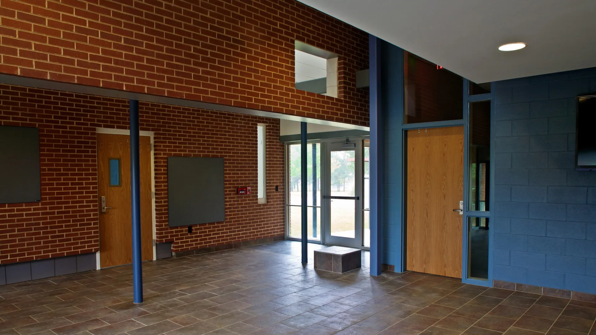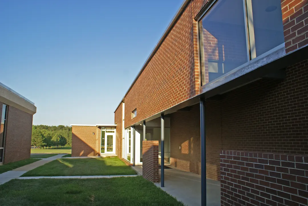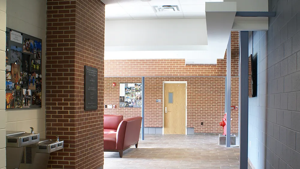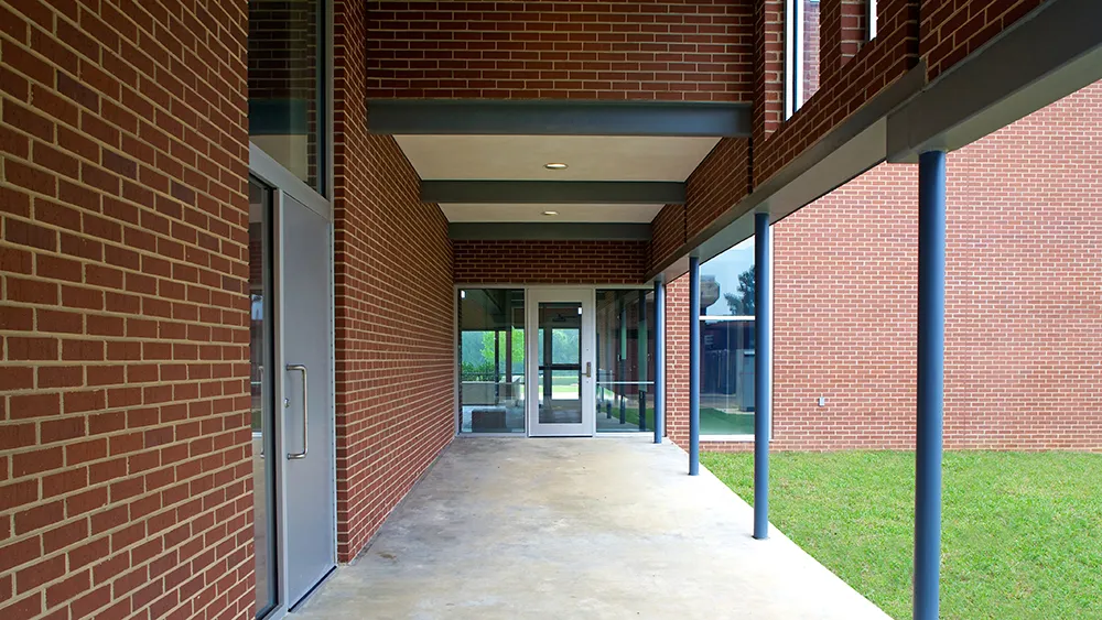 The New Classroom Facility consists of a straightforward program of two standard classrooms and two tiered lecture halls, all with the most current technology capabilities and related supporting spaces. The program spaces are arranged efficiently around a double-loaded corridor, with exterior finishes responding to those of the nearby existing Administration Building. The designated site, bounded on two sides by the Administration Building and on two sides by campus vehicular circulation, informed a somewhat square plan that capitalized on views to the grassy campus eastward and harder, constricted views oriented north and west. A new outdoor courtyard is created in the interstitial space between the existing building and the new classroom facility. The deliberate orientation of the building mass and the free circulation around the building provides direct access to the training fields for firefighter trainees. A complexity of natural light and structural elements, continuing and intermingling rhythms established the exterior porches, mark the intersection of corridors, and result in the synthesis of a lively main lobby.