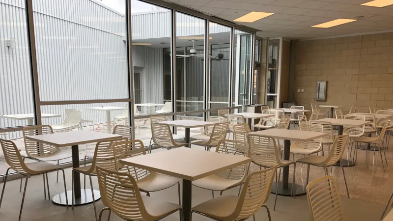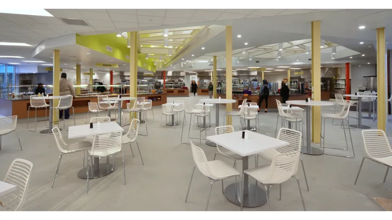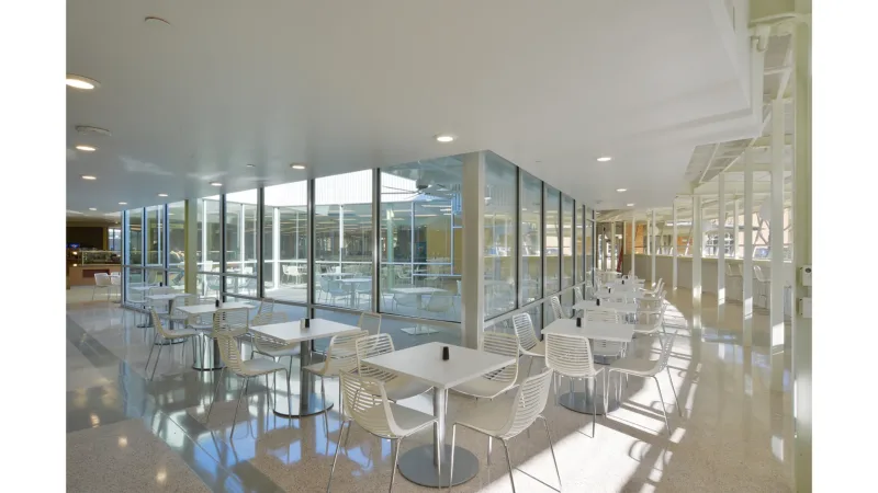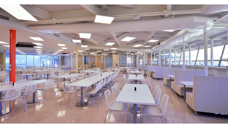 The new cafeteria renovation adaptively-reuses an iconic mid-century modern building by respectfully preserving, restoring, and enhancing its exterior, while creating an interior that dramatically improves its efficiency, sustainability, and functionality as a 21st century university dining facility.
