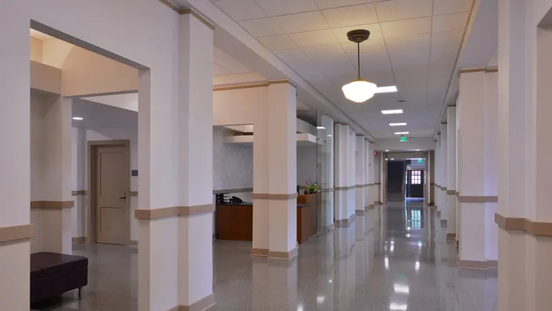 Main corridors, entrances, and stairs were left intact to maintain the historic integrity of the structure, while all remaining space was reconfigured to serve a bustling, 21st century administrative function, including President’s, Provost’s, and vice-presidential offices.