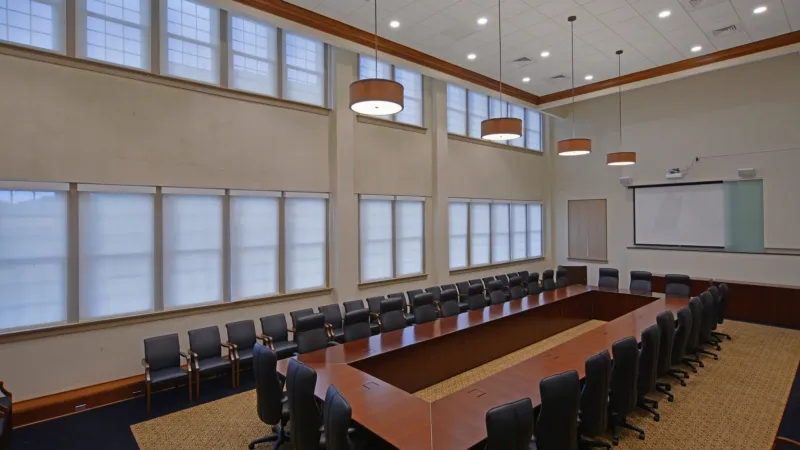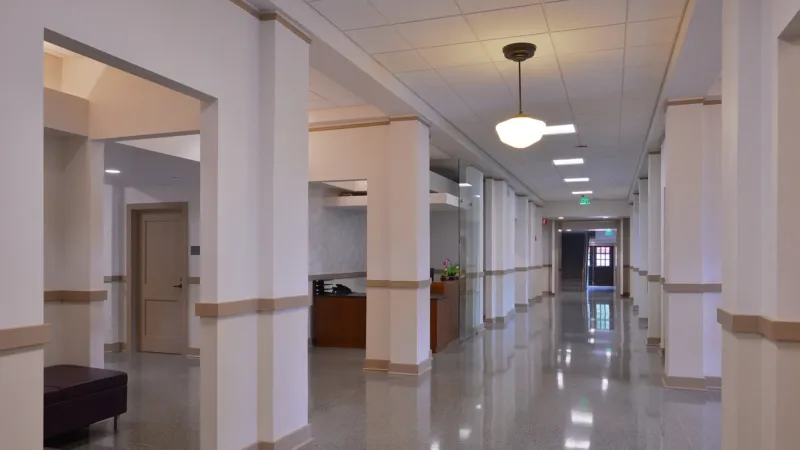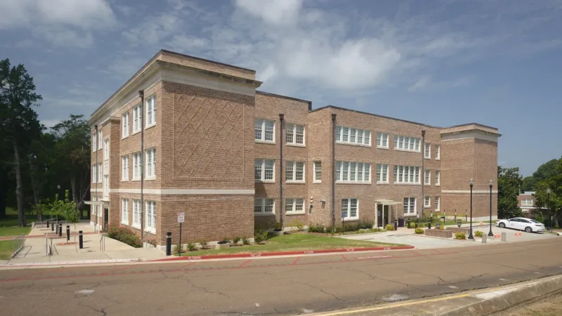 Designed by eminent Mississippi Architect C.H. Lindsley, Bowles Hall was built in 1928 at the core of the Alcorn State Campus. Bowles Hall is a stately historic classroom building that was adaptively-reused as the administration building for the University’s leadership. The restoration/renovation of the building required a complete renovation and reconfiguration of all interior spaces, including all finishes, fixtures, HVAC, plumbing, life safety, electrical systems and access control and security systems, and the addition of an elevator for ADA compliance. Main corridors, entrances, and stairs were left intact to maintain the historic integrity of the structure, while all remaining space was reconfigured to serve a bustling, 21st century administrative function, including President’s, Provost’s, and vice-presidential offices. The original two-story school library was transformed into the President’s board/conference room. Exterior scope included restoration of the building envelope: repoint/waterproofing of masonry walls, restoration of cast stone, window frame restoration, and window and door replacement. The South entrance to the building, facing the campus green, was re-defined with extensive landscaping, including a slate-paved plaza, a pristine raised entrance lawn, and paved paths that facilitate, and connect with, campus ADA accessible routes. The extended landscape surrounding Bowles Hall was also planned, including the approach from the current administration building, and the spatial and visual connection with the campus dining hall. When implemented, this work will include new pathways, plaza areas, and green spaces.